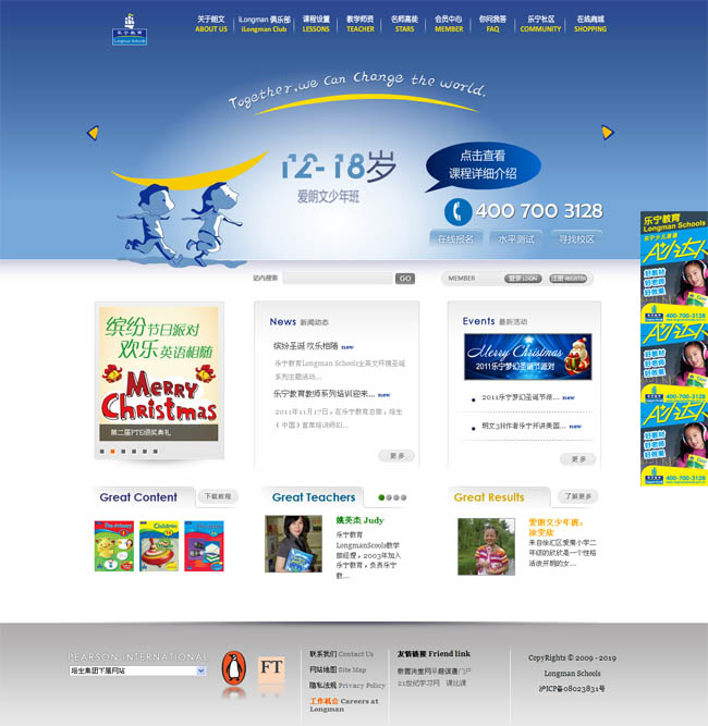 2008年11月上海著名英語培訓(xùn)機(jī)構(gòu)--樂寧教育攜手世界著名教育出版品牌朗文成立了樂寧教育Longman Schools。朗文教育品牌擁有285年的英語教育出版、培訓(xùn)歷史,全球涵蓋110個(gè)國家、超過5億人使用朗文教材學(xué)習(xí)英語。很多教育產(chǎn)品在中國已是家喻戶曉,如《朗文字典》、《新概念英語》、《走遍美國》、《SIDE BY SIDE》等。憑借朗文優(yōu)質(zhì)的教育資源和對中國教育市場的發(fā)展戰(zhàn)略及投入,樂寧教育Longman Schools立志將創(chuàng)新的教育理念帶給中國家庭,打造中國青少年兒童英語教育的第一品牌。