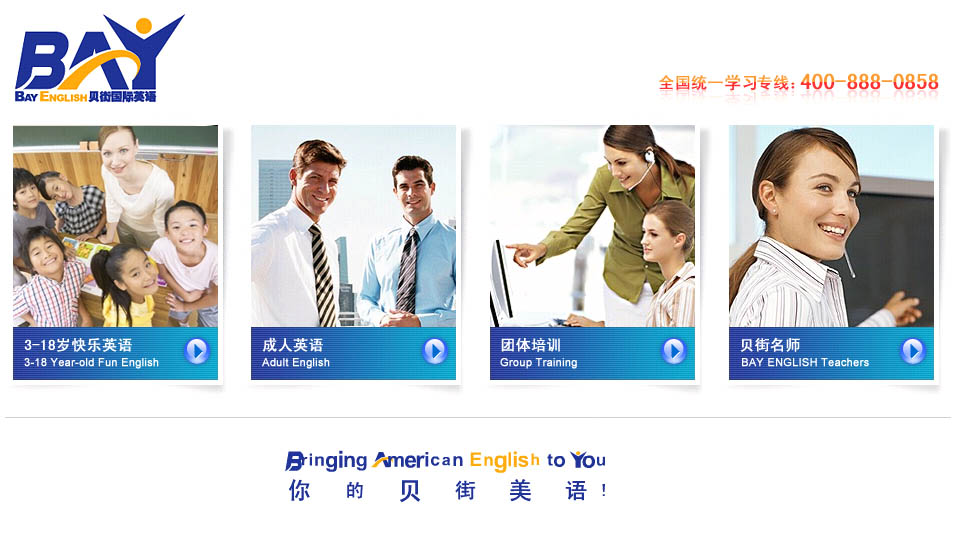 案例背景:貝街國際英語 Bay English致力于提升英語學(xué)習(xí)者的語言水平,讓更多的人分享世界一流語言和文化教育資源。貝街國際英語提倡"Live to Learn"(終身學(xué)習(xí))的理念,專注于提供3-60歲的第二語言培訓(xùn):Cleverkids English(3-6歲)幼兒英語、Expressbays(7-12歲)少兒英語、Teencoach(13-18)中學(xué)生英語和成人國際英語教育;為幼兒園、中小學(xué)英語教員提供“TESOL/TEFL”英語教學(xué)證書培訓(xùn),為各大商業(yè)機構(gòu)、政府和其他團體提供專業(yè)的商務(wù)英語和口語培訓(xùn),努力幫助非英語母語國家的人們實現(xiàn)便利語言溝通,成就精英人生。貝街國際英語Bay English秉承“提供專業(yè)英語教育”的理念,近期將陸續(xù)在上海、昆山、杭州、南京、寧波等城市建立一流學(xué)習(xí)中心,讓更多的英語學(xué)習(xí)者體驗高質(zhì)量的英語教學(xué)經(jīng)歷。