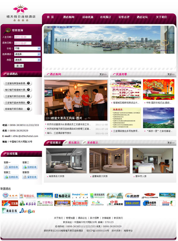 客戶心聲:“以前也找過網(wǎng)絡(luò)公司建設(shè)網(wǎng)站,可是做的網(wǎng)站都不好用,而且服務(wù)也不是很好。經(jīng)朋友介紹,海南網(wǎng)站建設(shè)做的好的是海南布谷,于是就抱著試試看的想法來做這個(gè)網(wǎng)站。我把初步的想法告訴布谷的策劃師之后,沒多久,就收到他們的策劃案,做得非常細(xì)致,直覺告訴我,這是一家值得信任的網(wǎng)站建設(shè)公司。簽定合同后一個(gè)月,網(wǎng)站做出來了。布谷的客服通知我試用網(wǎng)站,我登錄進(jìn)網(wǎng)站的后臺(tái),功能太人性化了,我居然能通過后臺(tái)批量發(fā)布一周甚至幾個(gè)星期的酒店客房價(jià)格。同時(shí)前端的界面也非常漂亮,我的客人反映都非常喜歡。”