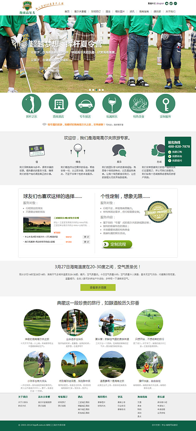 海南高球網(wǎng)。www.higolf.com.cn,是海南高球高爾夫咨詢管理公司的主要業(yè)務(wù)平臺。我們有“做好的高爾夫旅游”的追求,涵蓋個性旅游旅行、高爾夫賽事、人力資源、太美樂俱樂部等版塊,致力創(chuàng)造中國影響力聚合平臺。面向追求更個性化的高球人群,提供主題性、個性化與標(biāo)準(zhǔn)化相結(jié)合的產(chǎn)品,其中包括旅行產(chǎn)品與活動產(chǎn)品。2005年以來,我們接待過無數(shù)次高爾夫旅行團,有臺灣、新加坡、印尼、韓國、日本的高爾夫旅行團,為超過9000人提供過優(yōu)質(zhì)服務(wù)。