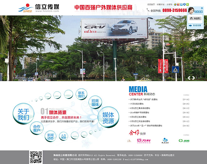 本公司秉承“誠信乃立足之本”的經(jīng)營理念,始終堅持以客戶為中心,以服務(wù)為核心的經(jīng)營方略,把客戶滿意作為至高無上的追求目標(biāo)和努力方向,公司呈現(xiàn)出了蒸蒸日上、突飛猛進(jìn)的良好發(fā)展勢頭,成為海南大型戶外廣告媒體的知名企業(yè)。2012年12月被評為海南省十佳公益廣告示范單位,2013年3月被評為第四屆中國百強(qiáng)戶外媒體供應(yīng)商。