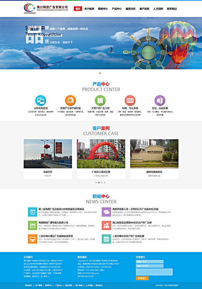 案例背景:海口暢想廣告有限公司自成立以來,一直致力于戶外廣告行業(yè),多年來時時洞察市場需求,不斷將產(chǎn)品改進升級.現(xiàn)已發(fā)展成具有一定規(guī)模,集LED戶外光電工程、LED顯屏、LED戶外大型發(fā)光字工程、大型專業(yè)戶外廣告制作、專業(yè)房地產(chǎn)終端推廣包裝、戶內外噴畫、吸塑雕刻、策劃設計、活動慶典、會場布置等為一體的綜合性現(xiàn)代廣告制作公司。