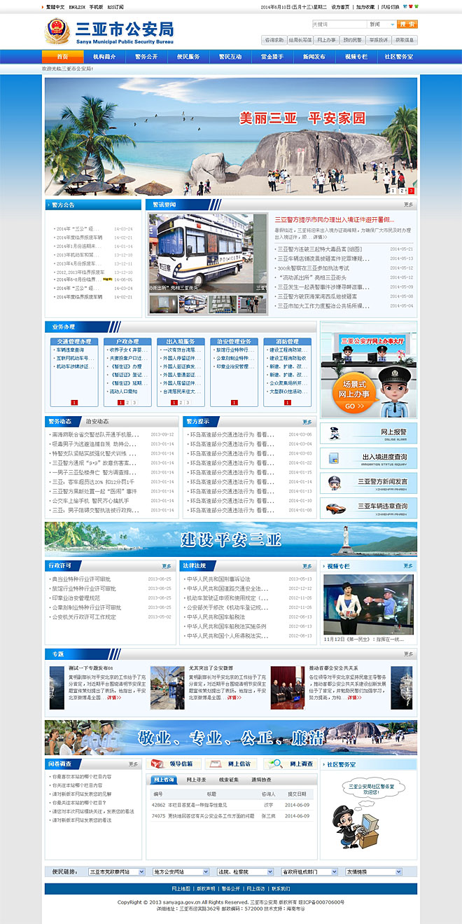 三亞市公安局是三亞市人民政府下設(shè)主管全市公安工作的職能部門,受市政府、海南省公安廳雙重領(lǐng)導(dǎo)。各縣(縣級市)區(qū)設(shè)公安局(分局),在鎮(zhèn)、鄉(xiāng)、街道設(shè)派出所;公安分局與派出所分別接受同級人民政府和上級公安機(jī)關(guān)領(lǐng)導(dǎo)。